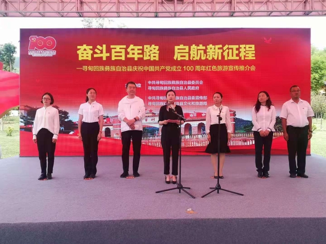 尋甸縣委常委、縣委宣傳部部長龍晶晶在致辭中說,舉辦這次紅色旅游宣傳推介會,既是感受紅色文化、接受紅色洗禮、接受黨史教育、弘揚長征精神的具體實踐,也是慶祝建黨100周年的重要系列活動之一,同時也是宣傳尋甸紅色文化資源、展示尋甸紅色旅游發(fā)展新成效、提升尋甸紅色文化旅游品牌的重要工作舉措。作為革命老區(qū),尋甸縣正高位統(tǒng)籌、高位推進(jìn)紅色旅游穩(wěn)步發(fā)展。我們將以此次主題活動為新的起點,繼續(xù)深入挖掘紅色文化、紅色資源,全面提升紅色旅游發(fā)展水平,以紅色旅游發(fā)展助力鄉(xiāng)村振興,加快建設(shè)高質(zhì)量“四區(qū)一城”。