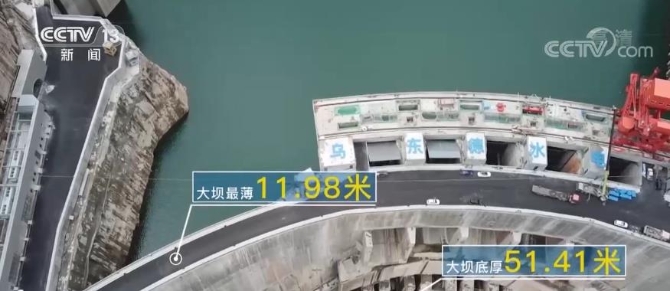烏東德水電站的攔河拱壩高270米,相當(dāng)于96層樓高。同時(shí)也是世界最薄的300米級(jí)雙曲拱壩,大壩底厚51.41米,大壩最薄部分僅有11.98米。
