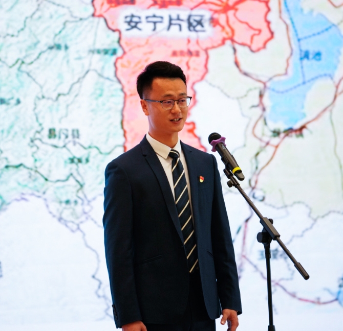 下午一點,比賽正式開始。首位參賽選手安傳貴帶來的演講主題是《凝聚力量 扎根滇中》?!白鳛槿珖?5個國家級新區(qū)、云南首個國家級新區(qū),云南滇中新區(qū)經(jīng)過6年的持續(xù)奮斗,在打基礎、建平臺、強招商、育產(chǎn)業(yè)、擴開放、優(yōu)環(huán)境等方面取得了一系列突破性成果。這一切的背后離不開無數(shù)新區(qū)人的努力與堅定?!彼麆忧榈恼f:”實干興邦、苦干興業(yè),艱苦奮斗,相信這是每一個新區(qū)建設者心中的信念,也能深刻感受到新區(qū)建設者們?yōu)樾聟^(qū)高質(zhì)量發(fā)展貢獻自己力量的決心?!?/p>