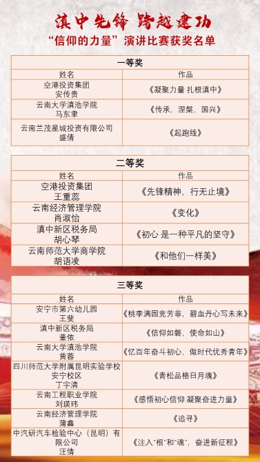滇中先鋒 跨越建功“信仰的力量”演講比賽獲獎名單