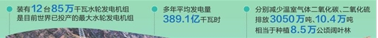 烏東德水電站位于我省昆明市祿勸彝族苗族自治縣和四川省涼山彝族自治州會東縣交界的金沙江河道上,裝機(jī)規(guī)模位列世界第七、中國第四,裝有12臺85萬千瓦水輪發(fā)電機(jī)組(目前世界已投產(chǎn)的最大水輪發(fā)電機(jī)組),多年平均發(fā)電量389.1億千瓦時。每年節(jié)約標(biāo)準(zhǔn)煤1220萬噸,分別減少溫室氣體二氧化碳、二氧化硫排放3050萬噸、10.4萬噸,相當(dāng)于種植8.5萬公頃的闊葉林。