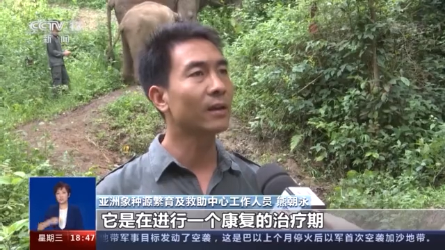 亞洲象種源繁育及救助中心工作人員 熊朝永:這些救助回來的大象,因為有一段時間是在進行康復(fù)的治療期,那么治療結(jié)束以后,我們就要把它帶到森林里面進行適應(yīng)性的生存訓(xùn)練。