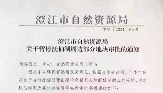 該通知稱,為啟動撫仙湖面山建設項目長久熔斷機制工作,現(xiàn)將對撫仙湖周邊部分地塊暫停辦理審批事項,涉及暫停項目達16個,具體為: