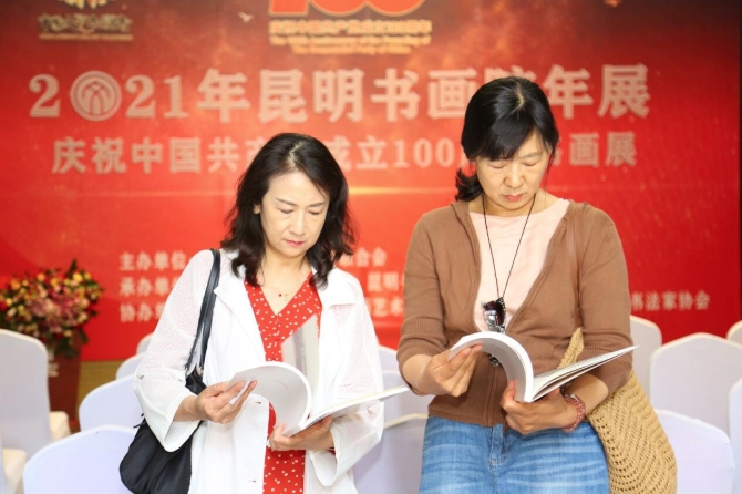 昆明信息港訊 記者甘凌菲 書畫凝固歷史,見證幸福生活。6月18日,“2021年昆明書畫院年展——慶祝中國共產(chǎn)黨成立100周年書畫展”在艾維美術(shù)館開展,昆明書畫院以書畫形式向黨的百年華誕獻(xiàn)禮,展覽將展出至7月18日。