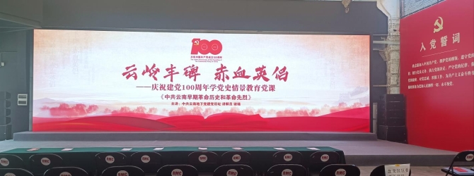 “情景黨課”《中共云南早期革命歷史和革命先烈》講演和《赤血英侶》舞臺劇兩個(gè)部分組成。《中共云南早期革命歷史和革命先烈》述了中共云南地下黨建黨時(shí)期的革命英雄事跡,而原創(chuàng)舞臺劇《赤血英侶》則通過昆明曲劇形式現(xiàn)場演繹中共云南早期地下黨杰出領(lǐng)導(dǎo)者李國柱、吳澄夫婦被國民黨反動派逮捕后,不為親情所動,不為富貴所淫,不為酷刑所屈的共產(chǎn)黨員大無畏革命氣概和高尚情操。通過“沉浸式”情景學(xué)習(xí)方式,讓云南早期革命歷史“活”起來,通過再現(xiàn)紅色歷史,推進(jìn)我區(qū)黨史學(xué)習(xí)教育深入人心,激勵(lì)黨員干部堅(jiān)定理想信念,攻堅(jiān)克難。