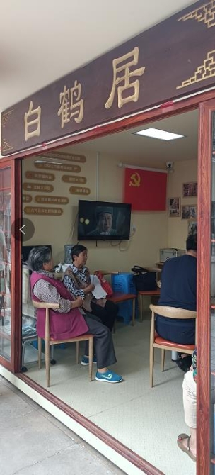 通過“街道黨工委一社區(qū)黨組織一小區(qū)(網(wǎng)格)黨支部一樓棟黨小組一黨員中心戶”網(wǎng)格化管理和服務(wù)五級治理工作模式,201號院得到了有效管理。原本堆滿垃圾的角落變成了休息運(yùn)動的綠色公園,坑洼泥濘的道路變成了整潔的水泥路面,房屋老舊的紅磚墻面畫上了頗具年代感的宣傳畫,通過與其他單位的協(xié)商共議小院里不單有了專門的停車區(qū)域,還設(shè)立了公共晾衣區(qū)和供居民休息學(xué)習(xí)的“白鶴居”。