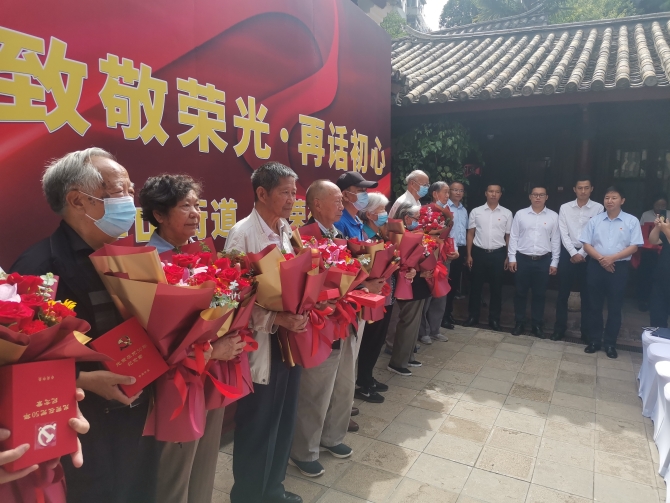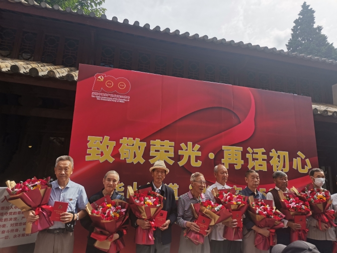昆明信息港訊 記者李紅鸞 值此中國共產(chǎn)黨成立100周年之際,根據(jù)中共中央《關于做好“光榮在黨50年”紀念章頒發(fā)工作的通知》精神。為做好分批次頒發(fā)“光榮在黨50年”紀念章工作, 6月20日,華山街道在朱德舊居舉行第一批次紀念章頒發(fā)儀式。