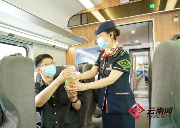 列車員在為旅客服務(wù) 昆明局集團(tuán) 供圖