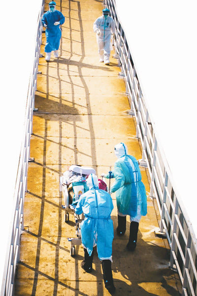 圖為二〇二〇年二月四日,醫(yī)護人員走向武漢火神山醫(yī)院病房。新華社記者 肖藝九攝
