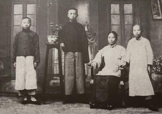 11歲的聶耳(右一)與母親彭寂寬和兩個哥哥
