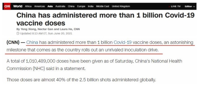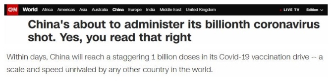 而在6月18日,CNN網(wǎng)站就發(fā)表過題為《中國即將進(jìn)行第10億次新冠疫苗接種。是的,你沒聽錯》的報道,稱中國“驚人的”接種規(guī)模和速度是世界上任何其他國家無法比擬的。