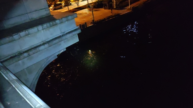 03時46分,救援人員到達現(xiàn)場。只見一女子突然縱身一躍跳入河中。