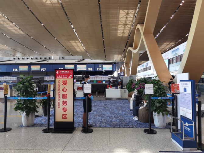 專區(qū)首選溫馨、舒適、安靜的區(qū)域,在位置選擇上,最大程度考慮值機(jī)區(qū)域至安檢區(qū)域最短、最便捷的路線。“愛心服務(wù)專區(qū)”可為需要愛心服務(wù)的旅客提供值機(jī)辦理、行李托運(yùn)、輪椅送機(jī)、陪同等候等服務(wù),每一個“愛心服務(wù)專區(qū)”內(nèi)都設(shè)置有“愛心柜臺”,工作人員可為無成人陪伴兒童、輪椅旅客、年長旅客等行動不便的人群提供全程陪同和送機(jī)服務(wù)。在“愛心服務(wù)專區(qū)”內(nèi),還設(shè)置有專屬休息區(qū),可供旅客及家屬休息、陪同使用。