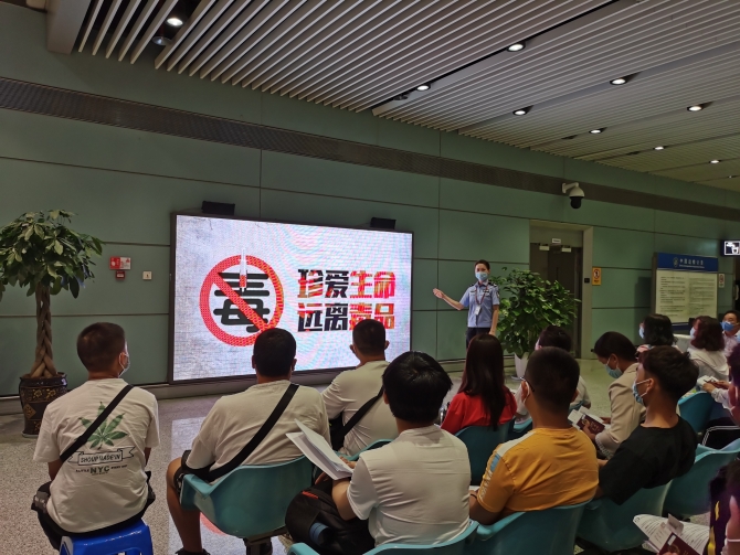 執(zhí)勤民警通過現(xiàn)場咨詢、播放禁毒視頻、發(fā)放禁毒知識宣傳資料等形式,圍繞“遠離毒品、安全出行”主題,向廣大出入境旅客進行禁毒宣傳,幫助大家識別各種常見和新型的毒品,認清毒品巨大危害,積極引導(dǎo)廣大出入境旅客學(xué)會如何在生活中拒絕毒品,不受毒品侵害,健康安全出行。