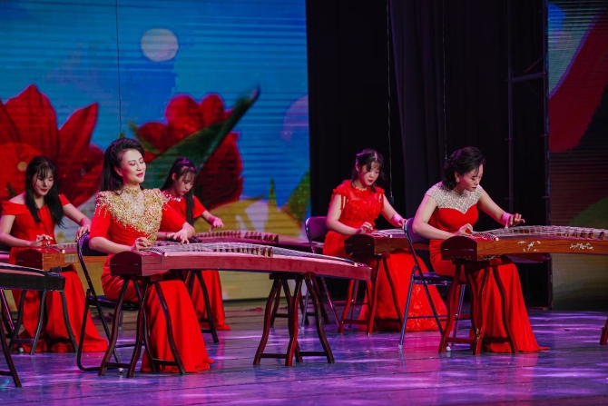 云南省管弦樂(lè)協(xié)會(huì)古箏專業(yè)委員會(huì)箏樂(lè)團(tuán)作為云南文學(xué)藝術(shù)界的一員也非常榮幸的參加了此次演出。在晚會(huì)上云南省管弦樂(lè)協(xié)會(huì)古箏專業(yè)委員會(huì)會(huì)長(zhǎng)王雅軒老師協(xié)同副會(huì)長(zhǎng)米曉玲、副會(huì)長(zhǎng)王繼穎、理事張怡琳并帶領(lǐng)云南藝術(shù)學(xué)院文華學(xué)院學(xué)生張?chǎng)┙?、魏娟、羅凌晶、趙樹(shù)林、張瑤瑤、李宇翔共同演奏了古箏曲《山丹丹花開(kāi)紅艷艷》。王雅軒表示:“全曲分為三個(gè)部分,音樂(lè)從遼闊、悠揚(yáng)的散板引子開(kāi)始,逐漸轉(zhuǎn)入富有高原牧歌式的優(yōu)美旋律,猶如婉轉(zhuǎn)、悠揚(yáng)的牧笛,描繪出一幅迷人的風(fēng)光。而后變?yōu)闅g快的、熱烈的,表達(dá)了人們對(duì)漫山紅透的山丹丹開(kāi)花的美景的贊美,同時(shí)也是對(duì)鄉(xiāng)土風(fēng)物的一種戀情。最后又回到第一部分主體旋律的原型。樂(lè)曲在尾句中表達(dá)了人們對(duì)未來(lái)充滿希望和對(duì)美好生活的追求。”