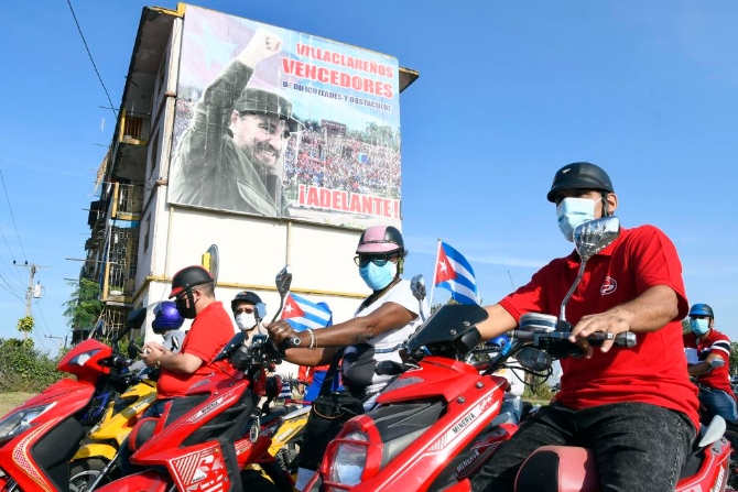 4月25日,古巴多地舉行游行活動(dòng),幾千名參與民眾要求美國(guó)解除對(duì)古巴近60年封鎖。新華社發(fā)(華金·埃爾南德斯攝)