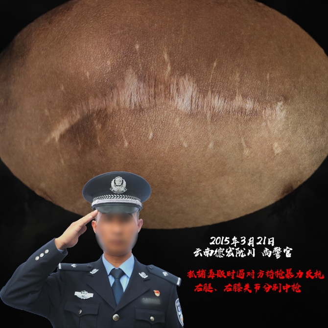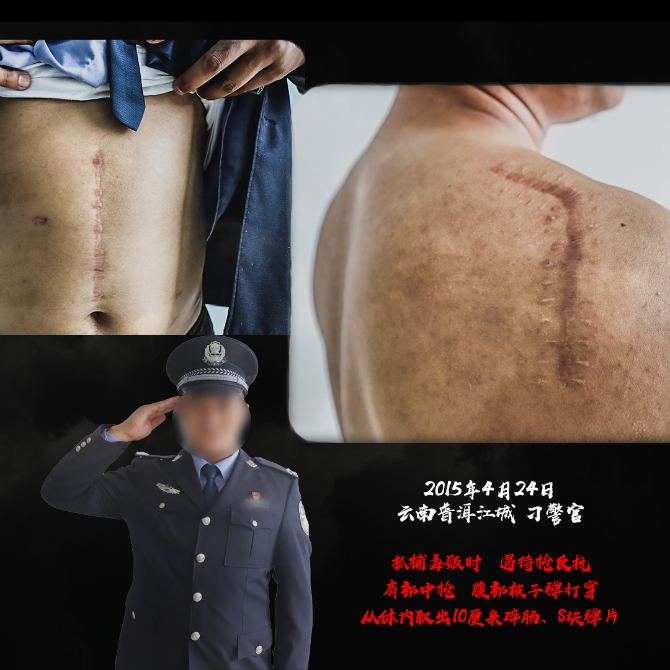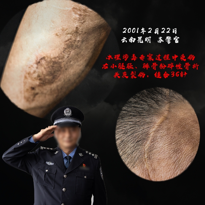“干禁毒這行,哪個(gè)沒有流過血、受過傷?”這是一位禁毒民警曾說過的話。禁毒民警是公安隊(duì)伍里最危險(xiǎn)、犧牲最多的警種之一,2017年以來全國就有33名禁毒民警犧牲、64名禁毒民警負(fù)傷,在與毒販交鋒中,受傷、流血是家常便飯,獻(xiàn)出寶貴的生命也在所難免,他們中的大多數(shù)將傷痕留在了自己身上,成了一道道永遠(yuǎn)無法抹去的“勛章”。(昆明信息港 記者合宇聰 云南省公安廳供圖)