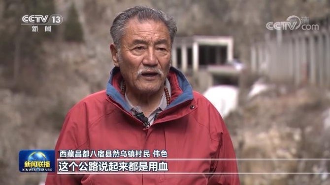 西藏昌都八宿縣然烏鎮(zhèn)村民 偉色:這個公路說起來都是用血、用生命修過來的。十八軍為什么有這個精神,就是共產(chǎn)黨為人民服務,不怕犧牲,不怕困難。