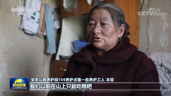 安多公路養(yǎng)護段109養(yǎng)護點第一批養(yǎng)護工人 本瓊:我們以前在山上只能吃糌粑,需要克服很多困難工作?,F(xiàn)在社會發(fā)展這么快,出門都有汽車,想吃什么都有。國家恩情重,怎么能不好好工作?