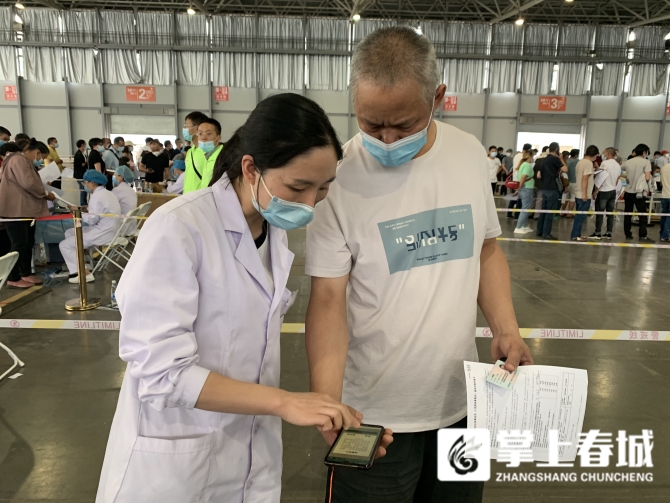 “醫(yī)生,我這個信息怎么填?”“你好,這里檔案怎么沒有顯示”……短短五分鐘,畢繼冬就為前來接種的市民解決了預(yù)約、登記、查詢等問題,同樣的回復(fù)、簡單的操作,畢繼冬每天得重復(fù)上百遍,雖然包裹著口罩,也難掩她疲憊的神色。