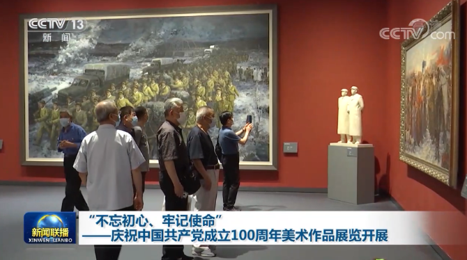 由中共中央宣傳部、中國(guó)文聯(lián)主辦的“不忘初心 牢記使命——慶祝中國(guó)共產(chǎn)黨成立100周年美術(shù)作品展覽”6月27日在中國(guó)共產(chǎn)黨歷史展覽館開(kāi)展。展覽聚焦建黨百年的重大歷史事件、杰出歷史人物和優(yōu)秀共產(chǎn)黨人,形象化地再現(xiàn)了中國(guó)共產(chǎn)黨的光輝歷程和不朽功勛,以藝術(shù)之美詮釋了在黨的領(lǐng)導(dǎo)下中華民族實(shí)現(xiàn)了從站起來(lái)、富起來(lái)到強(qiáng)起來(lái)的歷史性飛躍,以時(shí)代畫(huà)卷描繪了中國(guó)人民闊步新征程、奮進(jìn)新時(shí)代,實(shí)現(xiàn)中華民族偉大復(fù)興的光明前景。