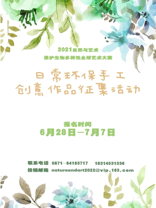 昆明信息港訊 記者昝娟娟 6月26日,由自然與藝術(shù)國際藝術(shù)大賽組委會主辦的“2021自然與藝術(shù)保護生物多樣性全球藝術(shù)大賽·日常環(huán)保手工創(chuàng)意作品征集活動”在昆明啟動。6月28日-7月7日期間,可報名參與投稿。