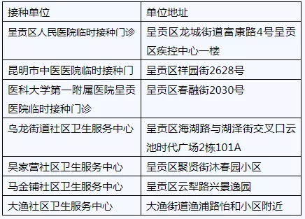 呈貢區(qū)新冠疫苗接種點名單