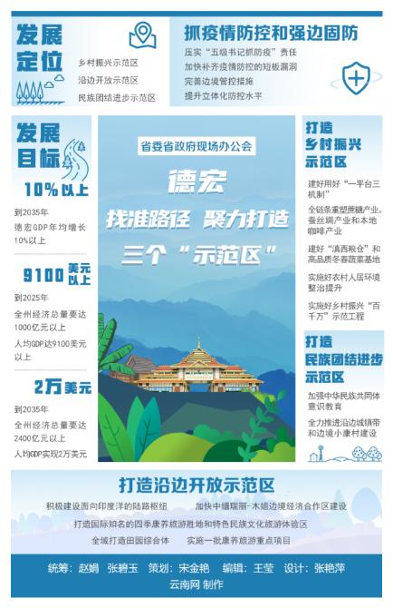5月13日至14日,省委、省政府召開德宏現(xiàn)場辦公會(huì)。會(huì)議強(qiáng)調(diào),德宏傣族景頗族自治州要明確目標(biāo)、找準(zhǔn)路徑,埋頭苦干、艱苦奮斗,努力成為鄉(xiāng)村振興示范區(qū)、沿邊開放示范區(qū)、民族團(tuán)結(jié)進(jìn)步示范區(qū)。