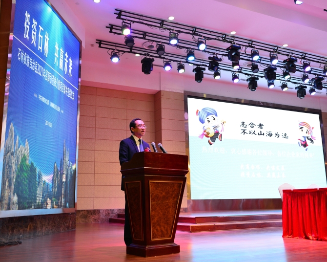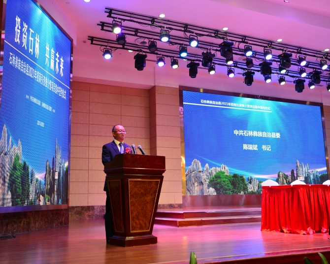 石林縣委副書記、縣人民政府縣長普建勇通過聚焦投資環(huán)境、梳理發(fā)展機(jī)遇、介紹發(fā)展舉措等對石林縣進(jìn)行推介,并誠摯邀請廣大企業(yè)家考察石林、投資石林、共贏未來。華潤現(xiàn)代中藥(昆明)有限公司、融創(chuàng)中國石林環(huán)球融創(chuàng)置業(yè)有限公司等企業(yè)負(fù)責(zé)人代表落地石林的企業(yè)作交流發(fā)言,表達(dá)了對石林投資環(huán)境的充分肯定。