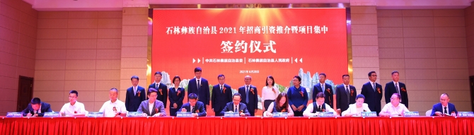 昆明信息港訊 記者龍泉積 6月28日,石林縣招商引資推介暨項目集中簽約儀式在石林銀瑞林國際大酒店舉行?,F(xiàn)場,石林縣人民政府與19家企業(yè)負(fù)責(zé)人簽訂《投資項目合作協(xié)議》,協(xié)議總投資達(dá)103億元,實現(xiàn)了石林縣“十四五”開局之年投資促進(jìn)工作“開門紅”。