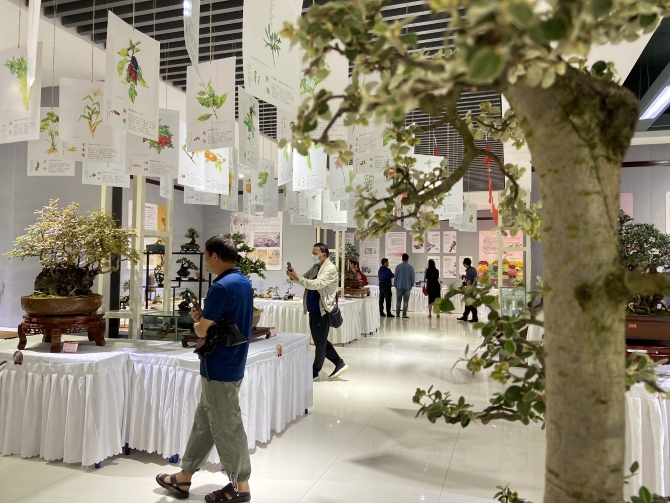 此次展覽設(shè)于官渡森林公園盆景文化科普示范園內(nèi)。參展盆景作品風(fēng)格多樣,有的體量龐大、氣勢(shì)非凡,有的古樸蒼勁、虬曲多姿,有的盤根露爪、枯枝露干,每一件盆景作品都風(fēng)韻各異、妙趣橫生。來自各地的盆景愛好者,或舉著照相機(jī)、手機(jī)拍攝,或駐足展臺(tái)前仔細(xì)品鑒或交流、探討作品的創(chuàng)作手法和技巧。