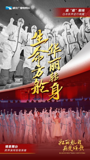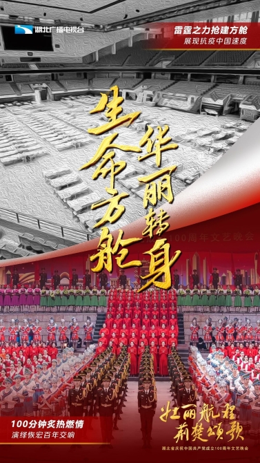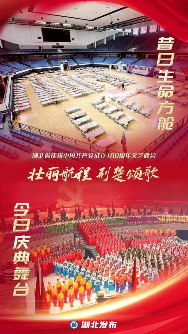 在中國共產(chǎn)黨成立100周年的重要時刻,湖北人民滿懷著對黨的感恩之情,在曾經(jīng)戰(zhàn)斗過的洪山體育館,為領(lǐng)導(dǎo)我們戰(zhàn)斗的中國共產(chǎn)黨慶生。歷經(jīng)10天的搭建,武漢昔日生命方艙變身今日華美舞臺,利用聲光電效果和全息三維等新技術(shù)手段,呈現(xiàn)史詩般的藝術(shù)效果,在虛實光影間,讓觀眾沉浸于中國共產(chǎn)黨在湖北走過的百年壯闊征程。