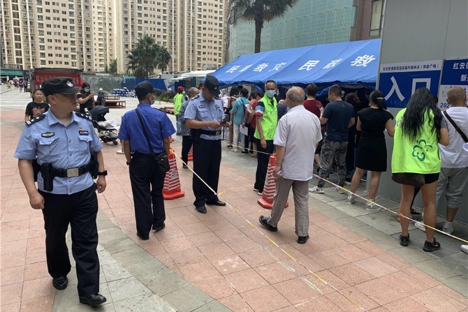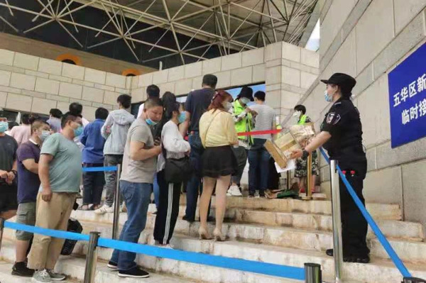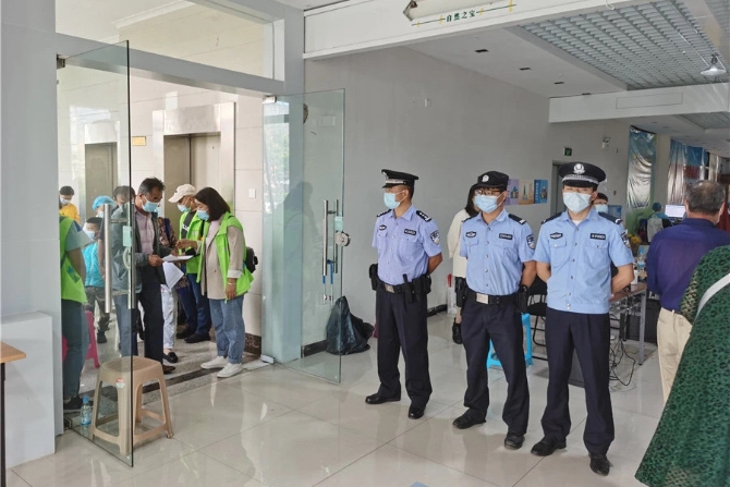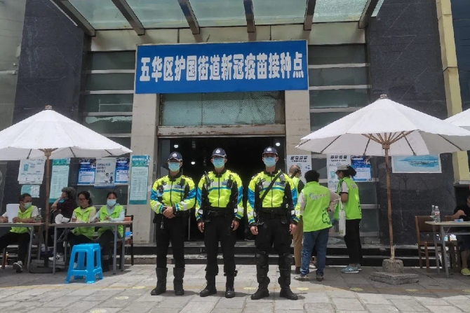 6月26日上午,科華路1號(hào)山霸大廈外疫苗接種點(diǎn)已涌入大量群眾等待接種,接種大廳人滿為患,已影響醫(yī)務(wù)工作人員正常工作的開(kāi)展。五華分局下沉支援科醫(yī)路所警力立即采取行動(dòng)對(duì)群眾排隊(duì)秩序進(jìn)行維護(hù),順利保障現(xiàn)場(chǎng)醫(yī)務(wù)工作人員正常開(kāi)展工作。(昆明信息港 記者合宇聰)