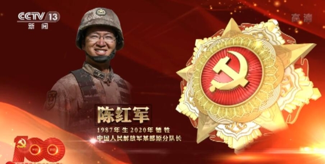 陳紅軍,甘肅兩當(dāng)人,1987年3月生,2009年4月入黨,2020年6月犧牲。他是新時代革命軍人的杰出代表,堅(jiān)守高原邊防10年,帶領(lǐng)官兵完成各種急難險重任務(wù)。2020年6月15日,奉命帶隊(duì)前往一線緊急支援,在同外軍戰(zhàn)斗中,英勇作戰(zhàn)、誓死不屈,為捍衛(wèi)祖國領(lǐng)土主權(quán)、維護(hù)國家核心利益壯烈犧牲。陳紅軍被追授“衛(wèi)國戍邊英雄”榮譽(yù)稱號。
