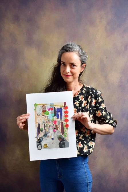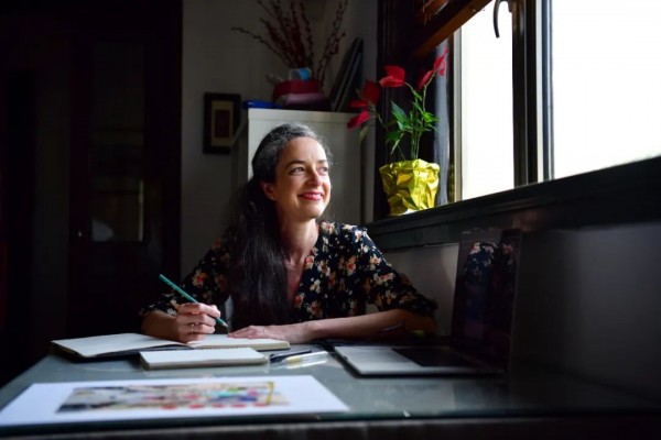 “如果你看過我書中的漫畫或我微信(公眾號)上的漫畫,就知道我所要表達的主要是我作為一個法國人在上海的生活。我不需要很宏偉的東西,可以從非常小的事情中得到靈感?!本拖襁@弄堂里,小小的房間,既是她的家,也是她工作的地方?!拔以谶@樣的小弄堂里工作,常常會看到鄰居窗外晾曬的衣服,這是非常中國化的畫面,實際上是中國人的日常生活,給了我很大的靈感。一些小細節(jié),比如一扇門、一個鳥籠,都會給我?guī)盱`感?!?/p>
