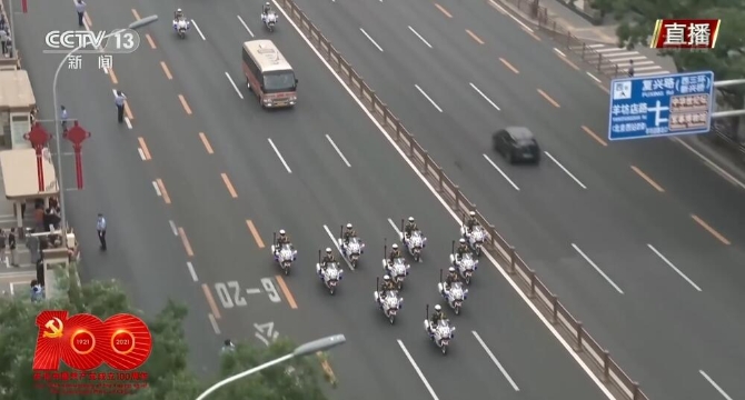為什么說是最高禮遇呢?這是因?yàn)閲e摩托車護(hù)衛(wèi),原是專為外國元首和政府首腦訪華設(shè)立的最高禮遇。今天,讓我們把共和國最高禮遇,獻(xiàn)給這些用畢生護(hù)衛(wèi)祖國和人民的優(yōu)秀共產(chǎn)黨員。