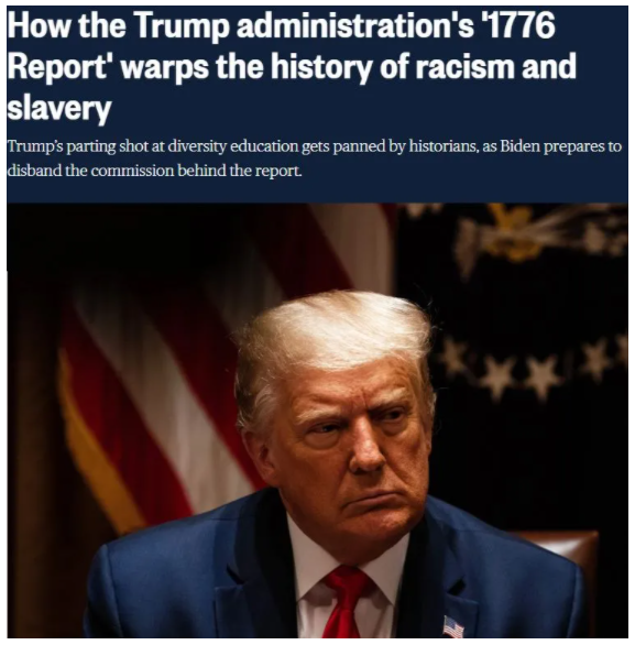△美國(guó)全國(guó)廣播公司(NBC):特朗普政府的“1776報(bào)告”如何扭曲種族主義和奴隸制歷史。