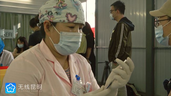 周娥是盤龍區(qū)聯(lián)盟街道金康園社區(qū)衛(wèi)生服務(wù)站醫(yī)護(hù)人員,一大早,周娥就在盤龍區(qū)聯(lián)盟街道同德廣場臨時(shí)接種點(diǎn)忙活開了。進(jìn)針快、推針慢、出針快,周娥嚴(yán)格按照各項(xiàng)規(guī)范要求,精準(zhǔn)、安全、快速地完成疫苗接種。“今天不要洗澡,一個(gè)星期不要喝酒、喝咖啡,打完針注意休息。”周娥手里沒停下,嘴里還不忘叮囑市民。