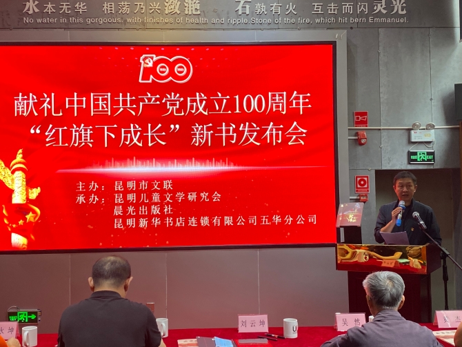 昆明信息港訊 記者羅文憶 6月29日,“紅旗下成長”新書發(fā)布會在昆明書城舉行?!凹t旗下成長”系列叢書在昆明市委宣傳部、昆明市文聯(lián)的關(guān)心支持下,由云南省著名兒童文學(xué)作家吳然老師擔(dān)任顧問,陳約紅老師擔(dān)任主編,昆明兒童文學(xué)研究會的李麗鈞、曹衛(wèi)華、樓琳、祁靜嫻、馬嘉5位作家傾力編著,由晨光出版社出版發(fā)行。