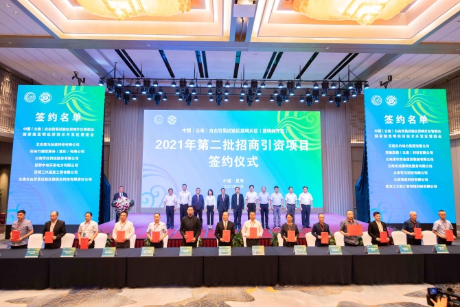 昆明信息港訊 記者栗飛 茍廷廷 通訊員馮靖凱 6月29日,中國(云南)自貿區(qū)昆明片區(qū)(昆明經開區(qū))舉行2021年第二批招商引資項目簽約儀式,與26家企業(yè)簽訂總投資約83.16億元的合作協(xié)議,其中內資75.96億元人民幣,外資1.1152億美元。