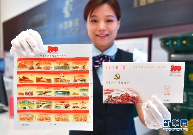 新華社北京6月29日電 記者趙文君 《中國共產(chǎn)黨成立100周年》紀(jì)念郵票和紀(jì)念封29日在北京發(fā)布。中國郵政將于7月1日發(fā)行《中國共產(chǎn)黨成立100周年》紀(jì)念郵票1套20枚,紀(jì)念封1套1枚。