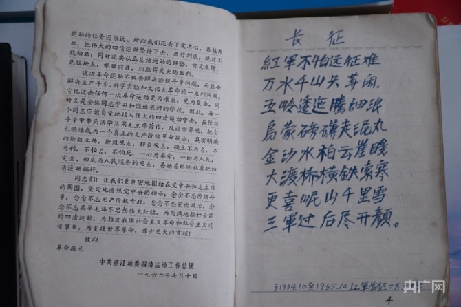 周勝手稿的第一頁抄錄了毛澤東的《七律·長征》(央廣網(wǎng)記者 王倩 攝)