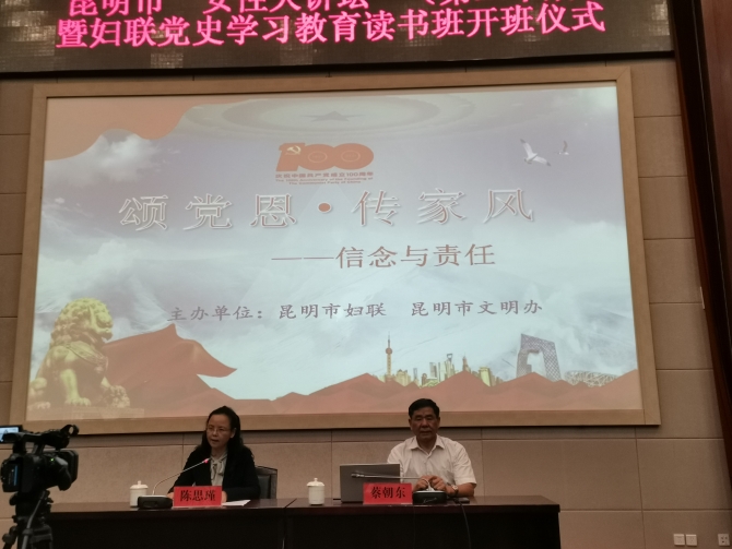 昆明信息港訊 記者李紅鸞 6月30日,昆明市“女性大講壇”(第二十期)暨婦聯(lián)黨史學(xué)習(xí)教育讀書班開班儀式在市級(jí)機(jī)關(guān)會(huì)議中心舉行。市婦聯(lián)執(zhí)委、市直機(jī)關(guān)婦工委、市衛(wèi)健委婦聯(lián)、市總工會(huì)女職工委員會(huì)、市婦聯(lián)機(jī)關(guān)及下屬事業(yè)單位干部職工參加專題學(xué)習(xí)。