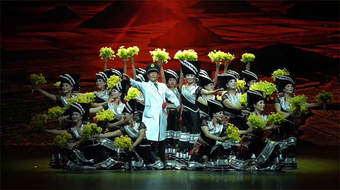 《情暖山寨》拉開(kāi)了文藝匯演序幕,展現(xiàn)了軍休干部退休不退志發(fā)揮余熱,把一片愛(ài)心和深情送到遙遠(yuǎn)的山寨,在決戰(zhàn)脫貧攻堅(jiān),同心奔小康的路上貢獻(xiàn)力量。一首首贊歌唱不夠,《當(dāng)那一天來(lái)臨、七月的天空》深情謳歌黨走過(guò)的光輝歷程,抒發(fā)軍休干部愛(ài)黨愛(ài)國(guó)愛(ài)軍愛(ài)人民的忠誠(chéng)。好山好水好地方,漫山遍野菜花香,布衣姑娘把歌唱,《情系彩云鄉(xiāng)》表達(dá)了擁軍愛(ài)民情意長(zhǎng)的深情厚意。敬禮!這是對(duì)英雄的致敬,更是對(duì)生命的致禮。《特別的敬禮》以詩(shī)與舞的結(jié)合,演繹了全社會(huì)共同緬懷革命先烈、關(guān)心關(guān)愛(ài)烈屬的情景。