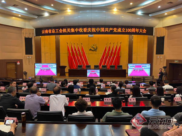 云南省總工會(huì)組織觀看慶祝中國(guó)共產(chǎn)黨成立100周年大會(huì)。