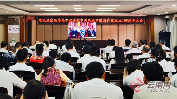 云南省民族宗教委組織集中觀看慶祝中國(guó)共產(chǎn)黨成立100周年大會(huì)。羅紅菱 攝