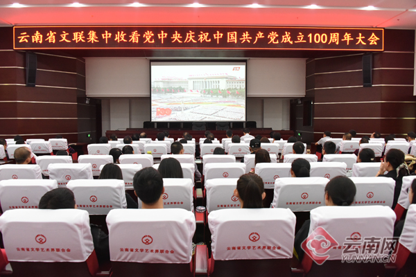 云南省文聯(lián)組織全體干部職工集中收看慶祝中國(guó)共產(chǎn)黨成立100周年大會(huì)。