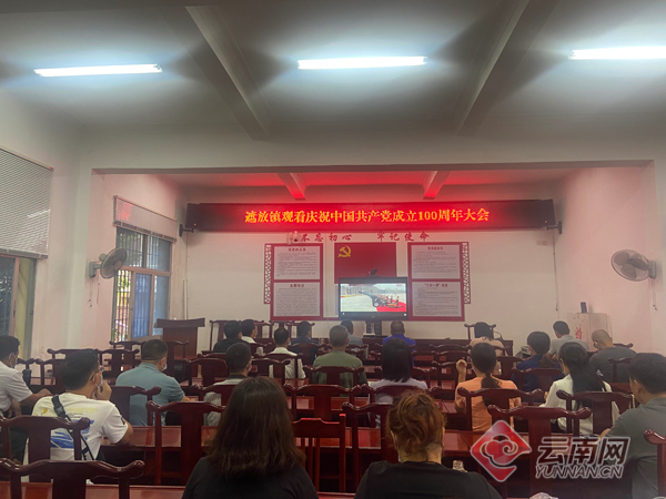 德宏州芒市遮放鎮(zhèn)人民政府黨員干部收看慶祝中國(guó)共產(chǎn)黨成立100周年大會(huì)。