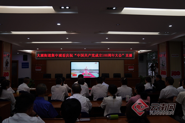 大觀街道集中觀看慶祝中國(guó)共產(chǎn)黨成立100周年大會(huì)。