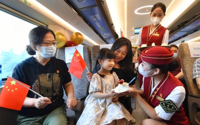 6月29日,G7次復(fù)興號(hào)動(dòng)車組列車從北京南站駛出。載著千名旅客、帶著10年記憶,這趟列車沿著1318公里高鐵線飛馳,為中國共產(chǎn)黨建黨百年獻(xiàn)上新時(shí)代鐵路的深情祝福。